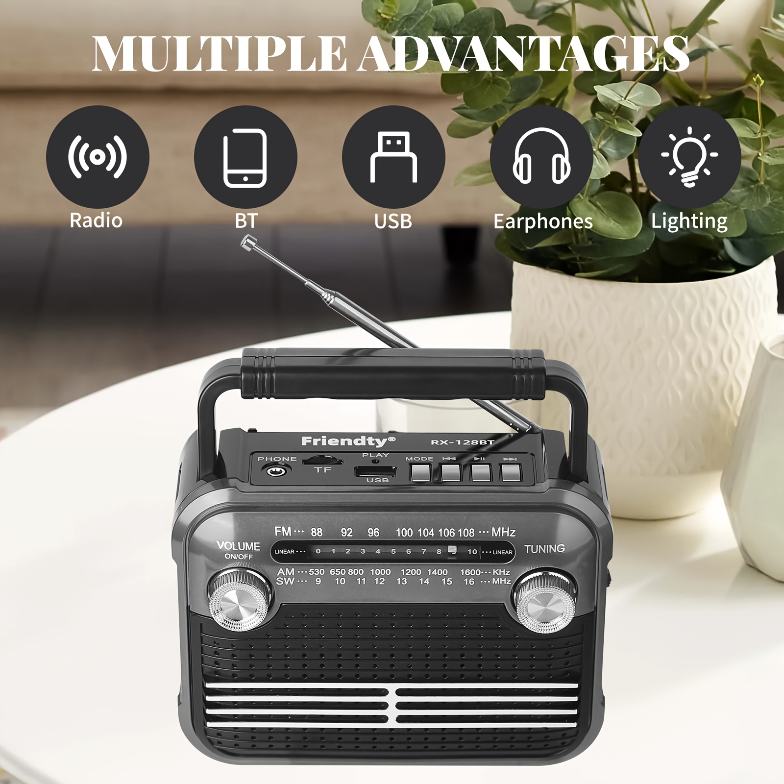 128BT Portable All-Band Radio with FM/AM/SW1-6, USB/TF/BT Connectivity, Dual Power (Battery/USB), Loud Speaker & Headphone Jack, Digital Display, Ergonomic Handle & Protective Grille - Indoor/Outdoor Multi-Wave Receiver with AM/FM/SW1-6 Tuning, USB/TF/BT Streaming, Battery/USB Power Options, Compact & Portable Design for Home, Travel, Camping, Emergencies - Ideal for Music & News Use, USB Radio Portable