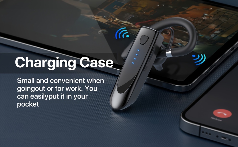 180-Hour Standby Time Wireless Headset with Microphone - Mono Business Earbuds, Noise Cancelling, Push Button Control, USB-C Charging, for Office, Travel, Gaming, Gaming Headset, Sleek Headset, Durable Headset