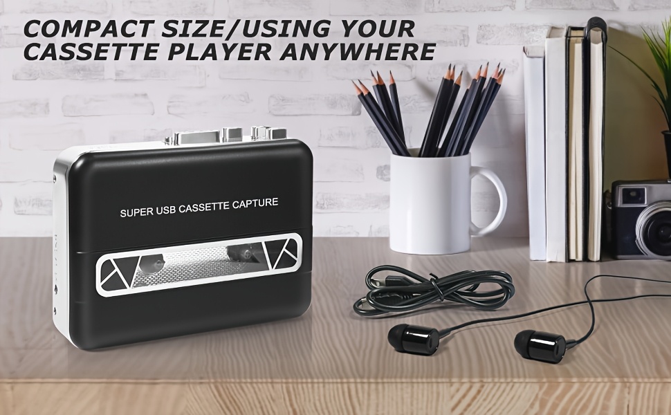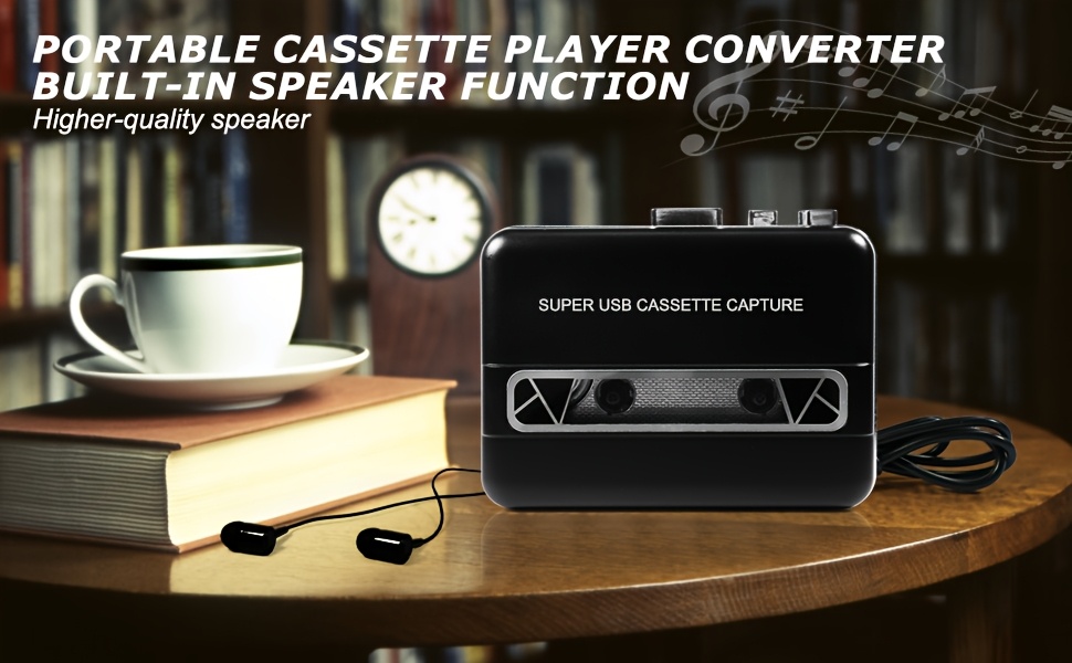 1pc Portable Auto Reverse Cassette Tape Player, USB Powered, Clear Stereo Sound, with Speaker & Headphone Jack, Cassette to MP3 Converter, Dual Power Mode (USB/Battery), Operating Voltage ≤36V - No Battery Included