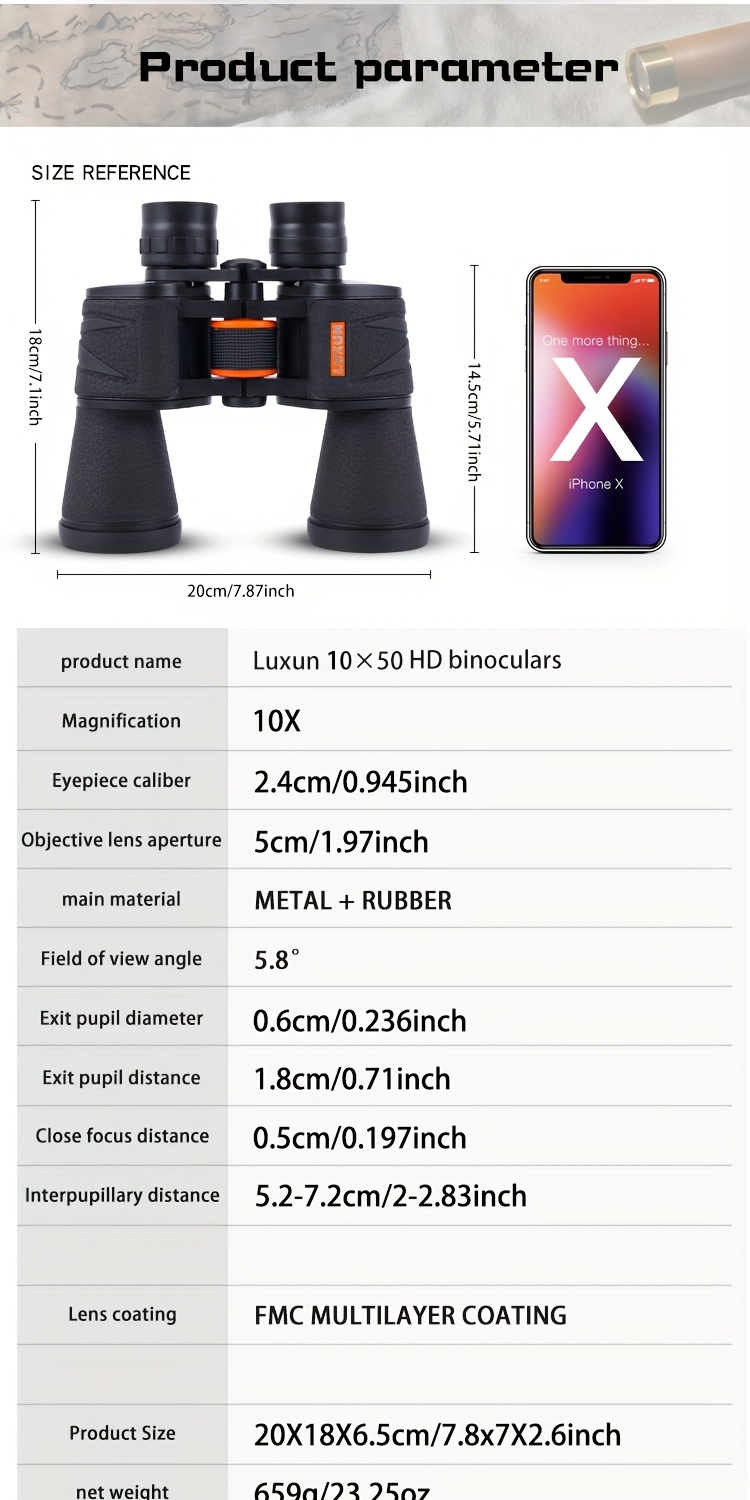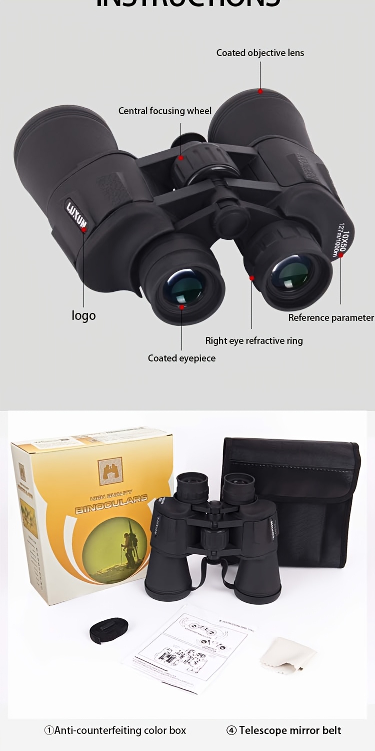 [High-Definition Binoculars] 10x50 High-Definition Binoculars with FMC Multi-Layer Coating | Ideal for Bird Watching, Sports Events, Hunting - Includes Carrying Case and Shoulder Strap