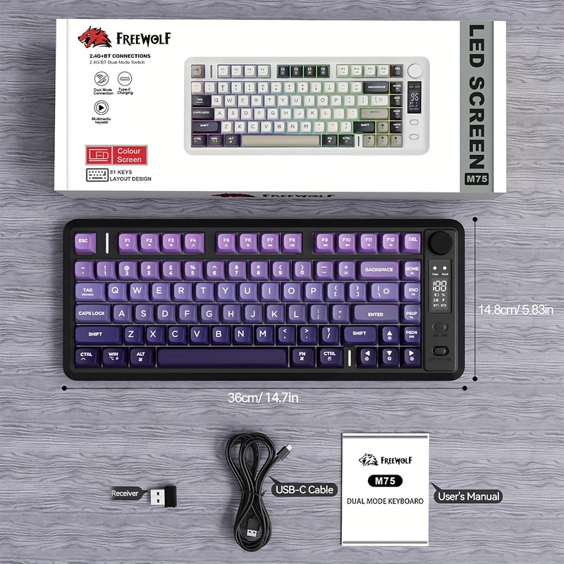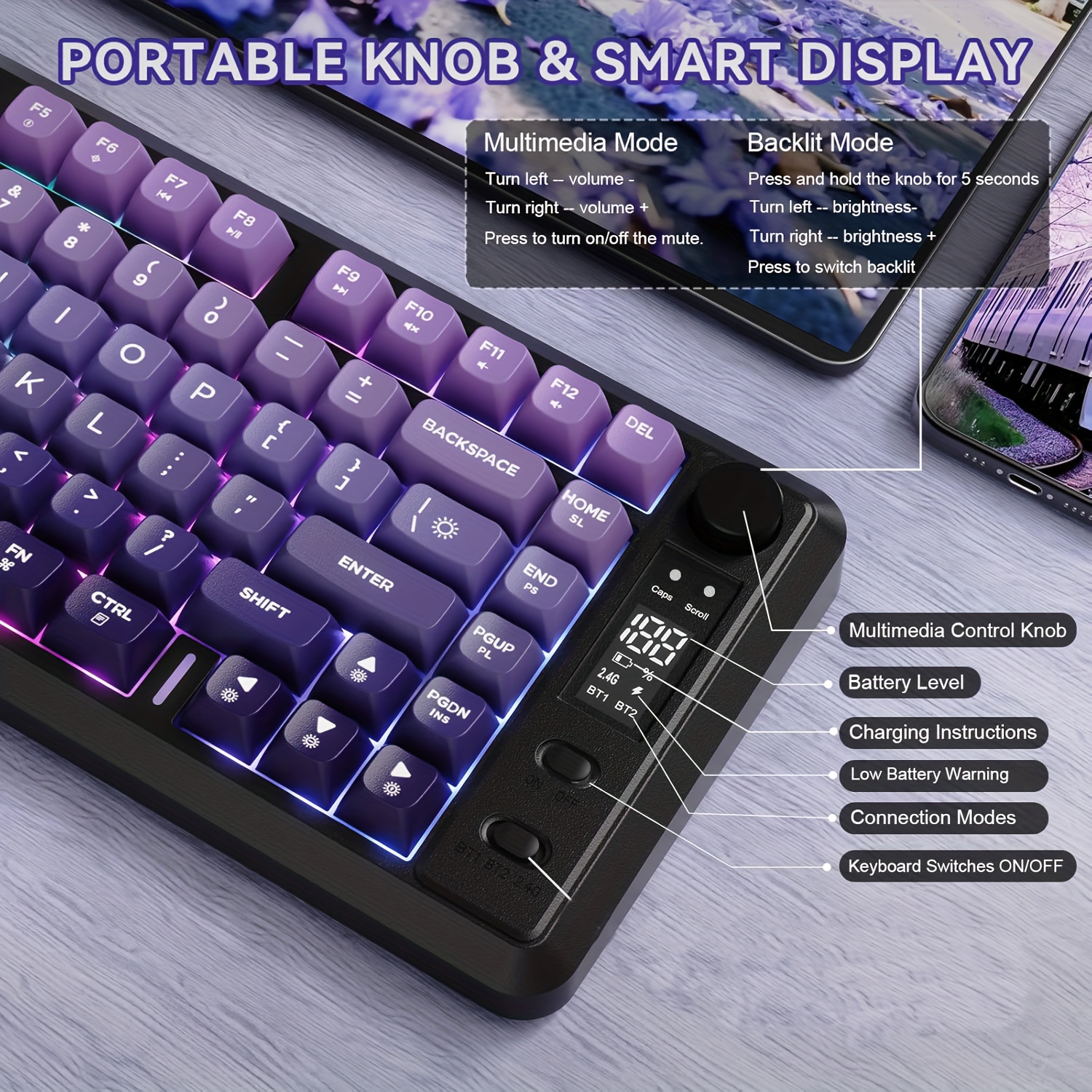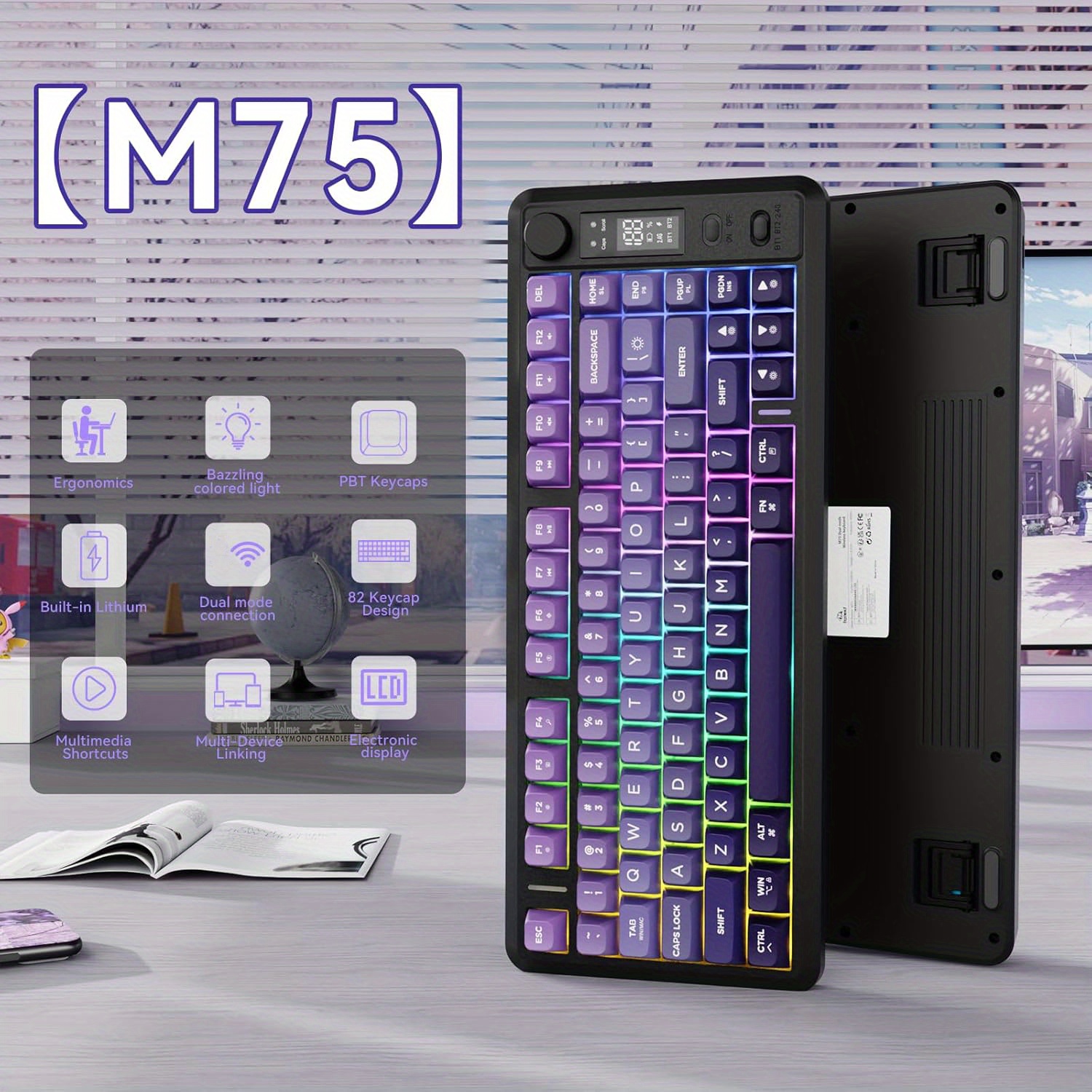 M75 Gaming Keyboard, RGB Backlit Small Membrane Keyboard with Smart Display & Knob, PBT Gradient Keycaps for PC, MAC