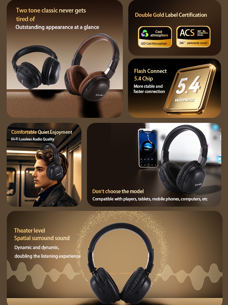 [Noise-Canceling Headphones] Classic Model Noise-Canceling Headphones - Dual Chip Technology, Lossless Sound, Dual Golden Plating Certification, Foldable/Wireless Design with Strong Anti-Interference Capability, Ensures Seamless Listening Even Outdoors