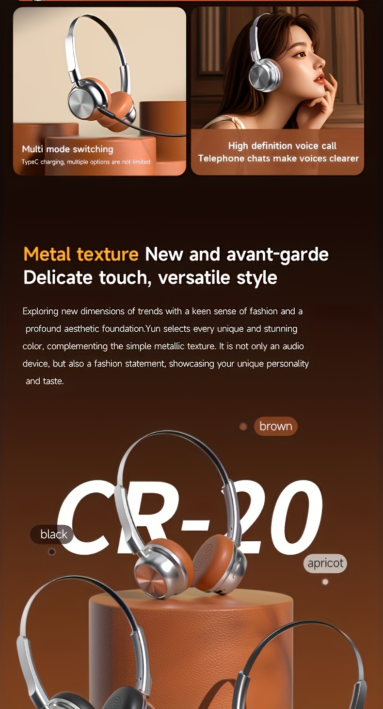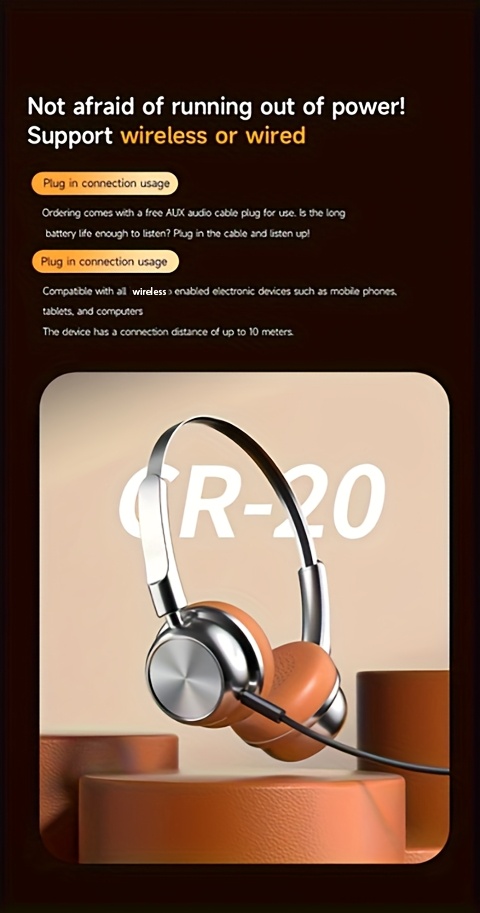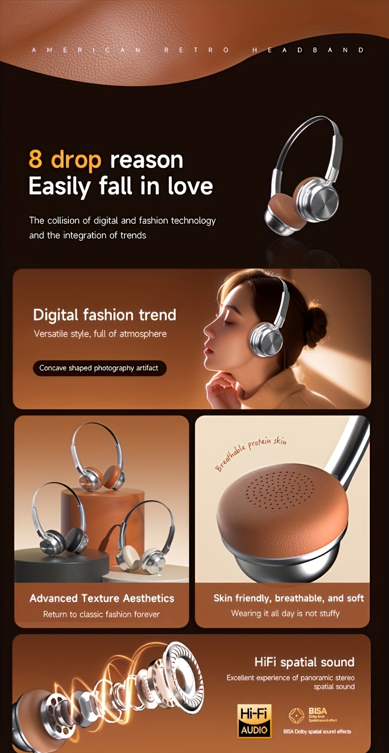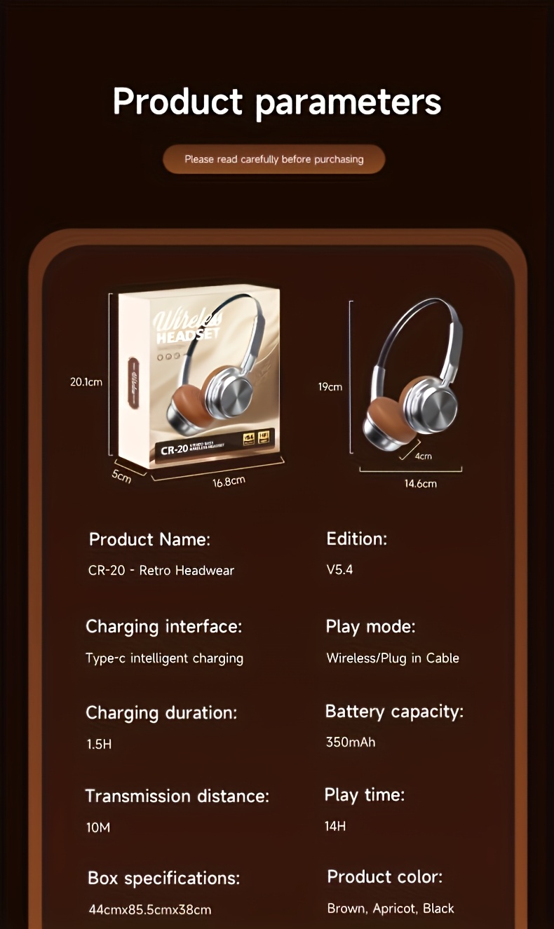 Vintage Design Headset CR-20, Lightweight and Retractable Design, Fashionable Earphones, First Choice for Gifts, Compatible with Mobile Phones, First Choice for Gaming and Watching Movies