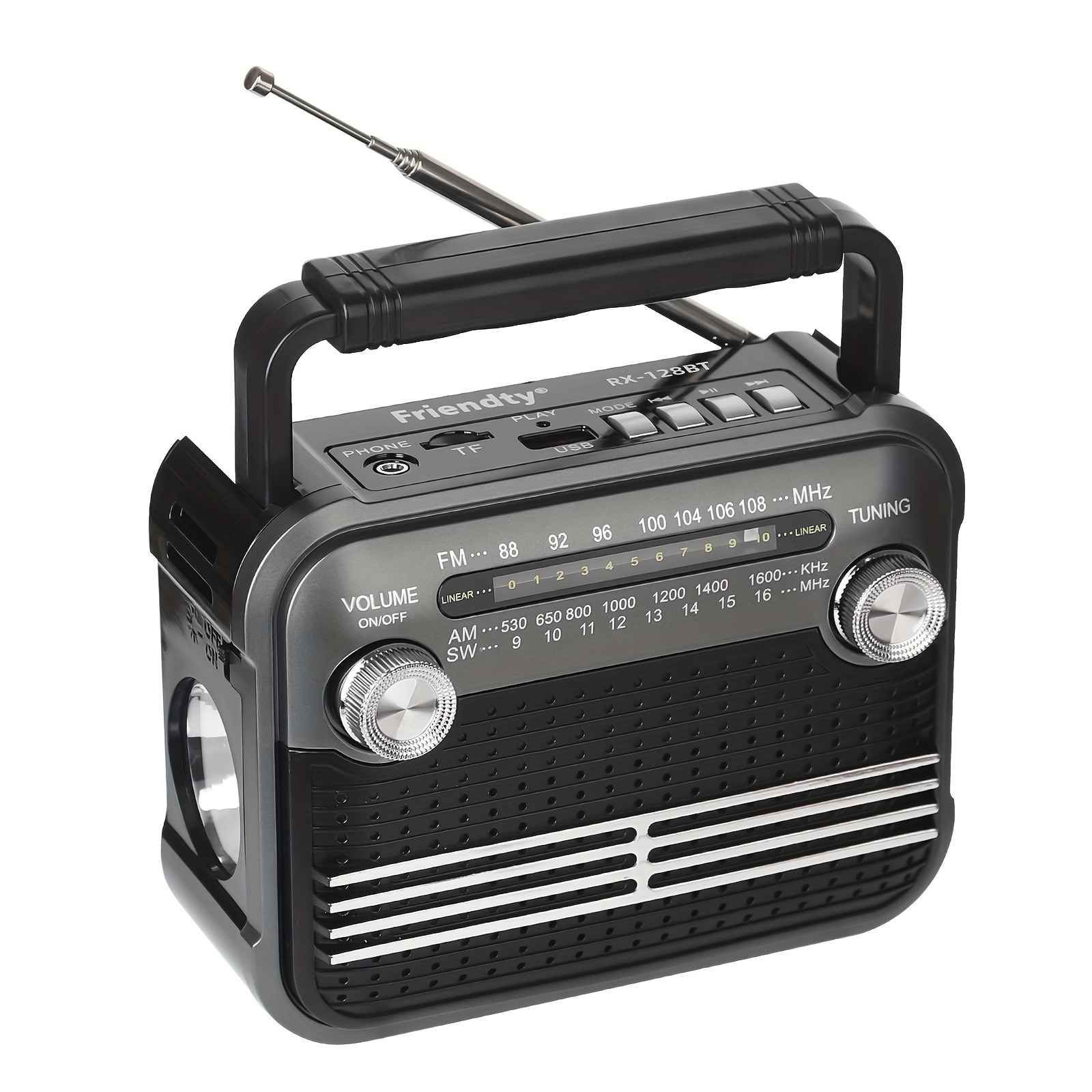 128BT Portable All-Band Radio with FM/AM/SW1-6, USB/TF/BT Connectivity, Dual Power (Battery/USB), Loud Speaker & Headphone Jack, Digital Display, Ergonomic Handle & Protective Grille - Indoor/Outdoor Multi-Wave Receiver with AM/FM/SW1-6 Tuning, USB/TF/BT Streaming, Battery/USB Power Options, Compact & Portable Design for Home, Travel, Camping, Emergencies - Ideal for Music & News Use, USB Radio Portable