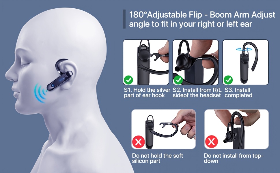 180-Hour Standby Time Wireless Headset with Microphone - Mono Business Earbuds, Noise Cancelling, Push Button Control, USB-C Charging, for Office, Travel, Gaming, Gaming Headset, Sleek Headset, Durable Headset