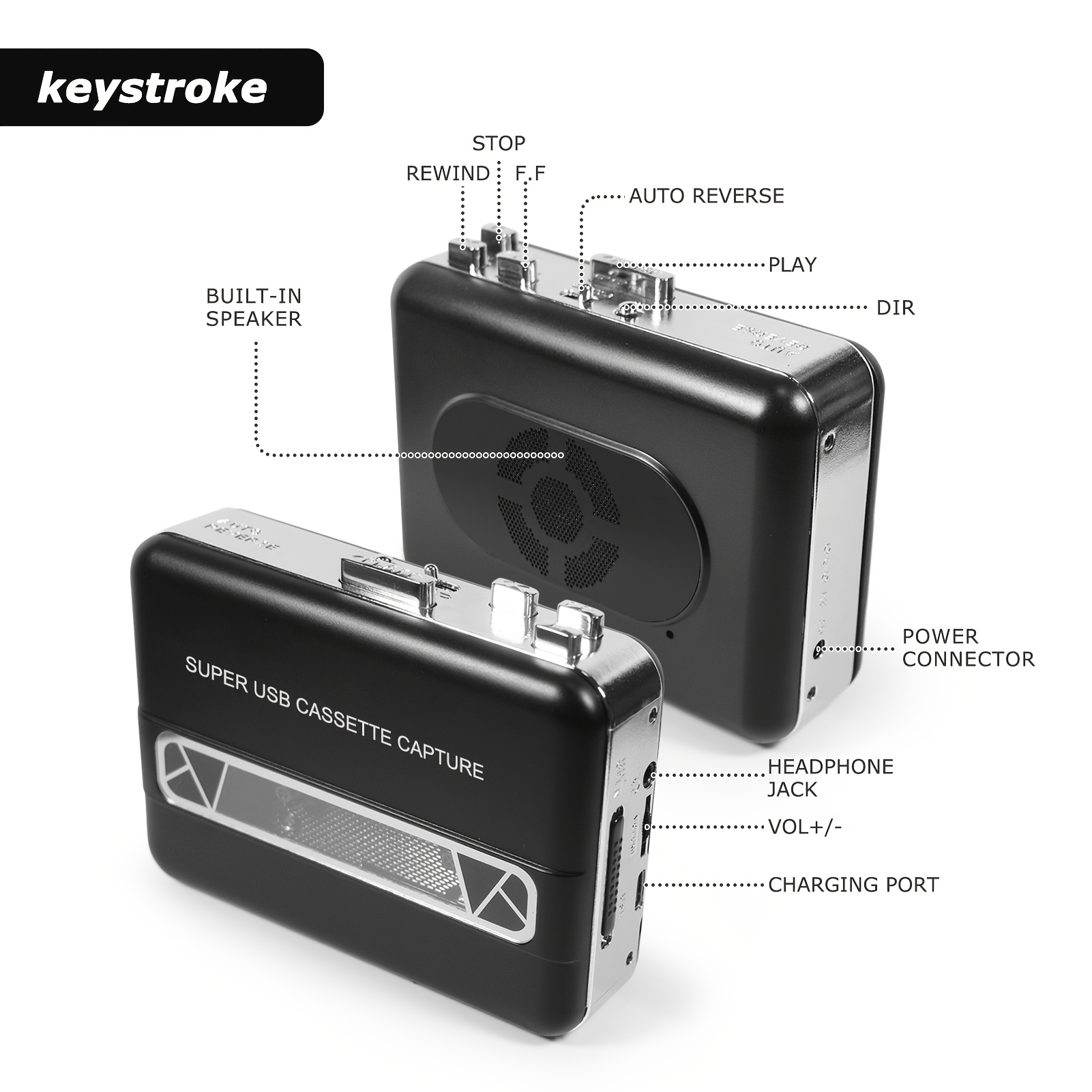 1pc Portable Auto Reverse Cassette Tape Player, USB Powered, Clear Stereo Sound, with Speaker & Headphone Jack, Cassette to MP3 Converter, Dual Power Mode (USB/Battery), Operating Voltage ≤36V - No Battery Included