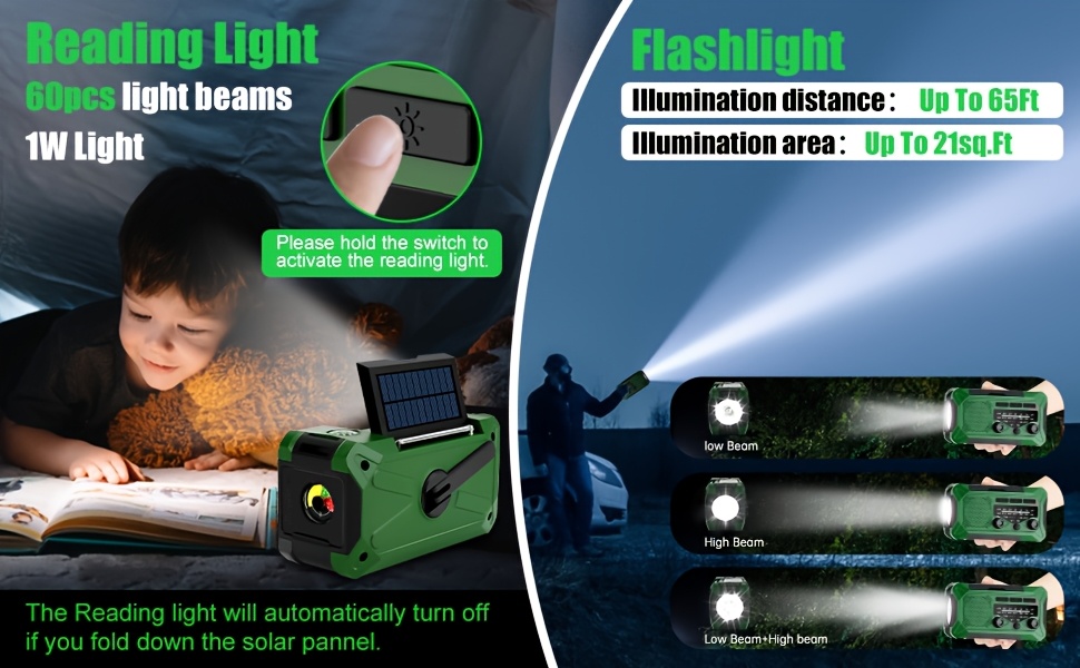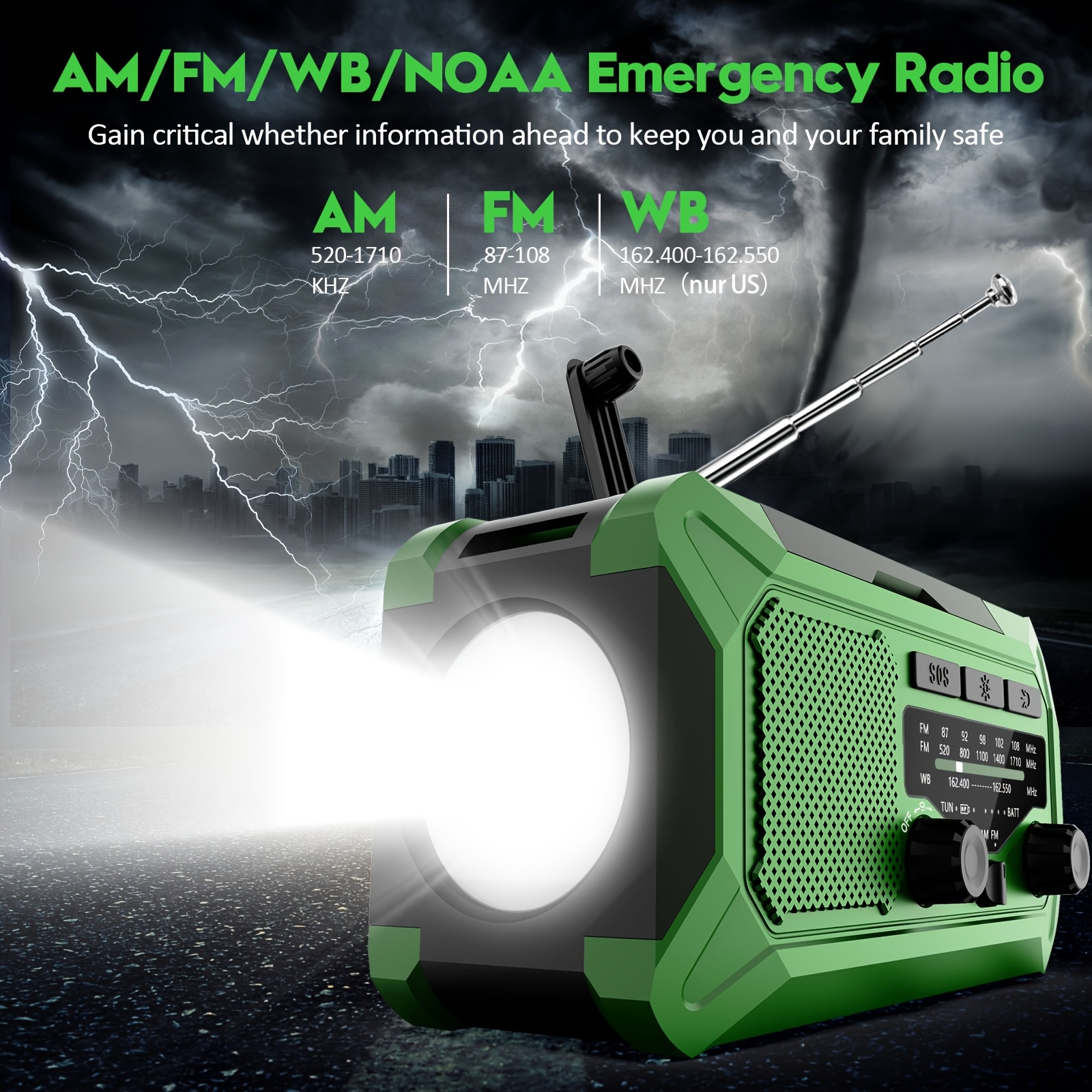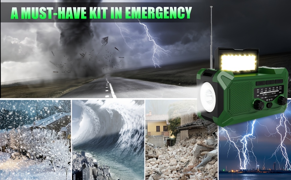 36800mwh 1 pack Emergency Radios for Families with AM/FM, 3-Way Charging (Hand Crank/Solar/USB), Kid-Friendly SOS Alarm, Flashlight, Reading Light, Thermometer, Compass & 10000mAh Power Bank - Peace of Mind for Every Home