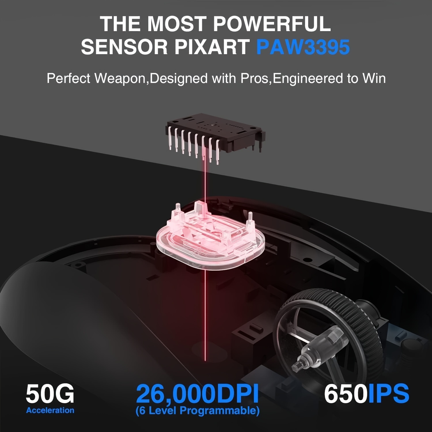 AJ199 Wireless Gaming Mouse, 59G Ultra Lightwieght-Huanuo Micro Switch-26K PAW3395 Sensor-40Hrs Battery Life-2.4G/USB-C Mouse Gaming -Wireless Computer Mouse 6 Programmable Buttons, 100% PTFE Feet