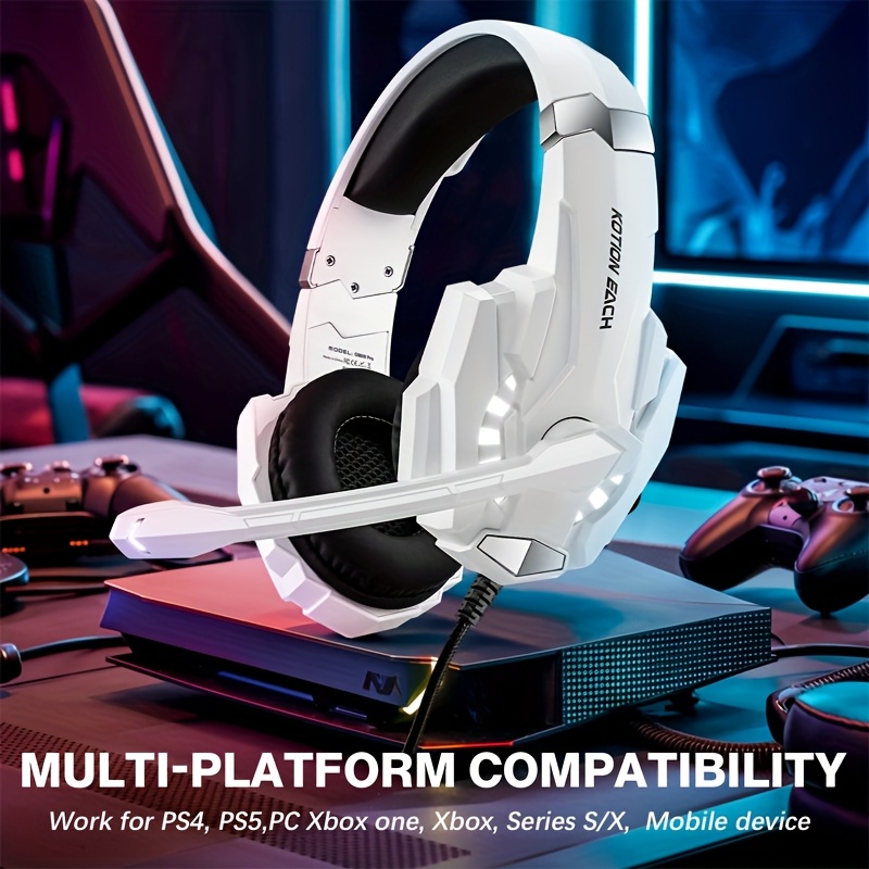 [Gaming Headset] Noise Cancelling Gaming Headset | Over Ear Headphones with Mic, LED Light, Bass Surround for PS4 PS5pcs Xbox One Controller, Soft Memory Earmuffs for Laptop Mac