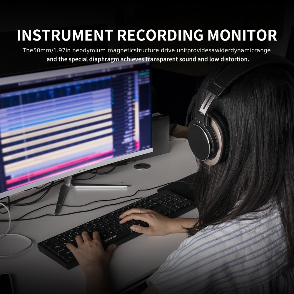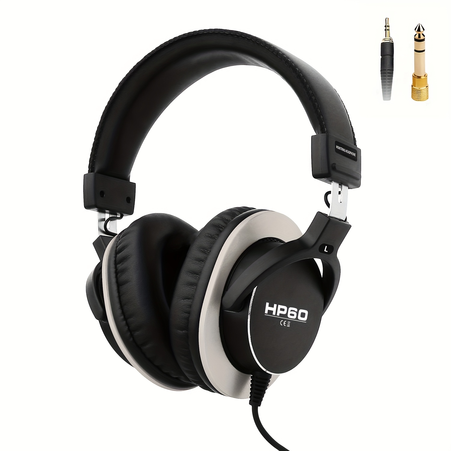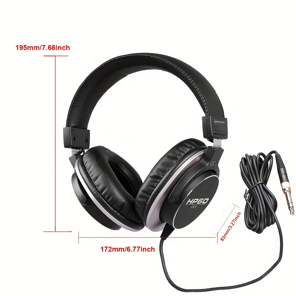 HP60 Professional DJ Monitor Headphones Closed-Back Headphones with 3.5mm + 6.35mm Plug, Rich High Treble, Suitable for DJs, Recording Studios, and Music Production Equipment, Studio Headphones, Closedback Design, Durable Headphones, Closed-Back Headphones, 3.5mm + 6.35mm Plug, High Treble