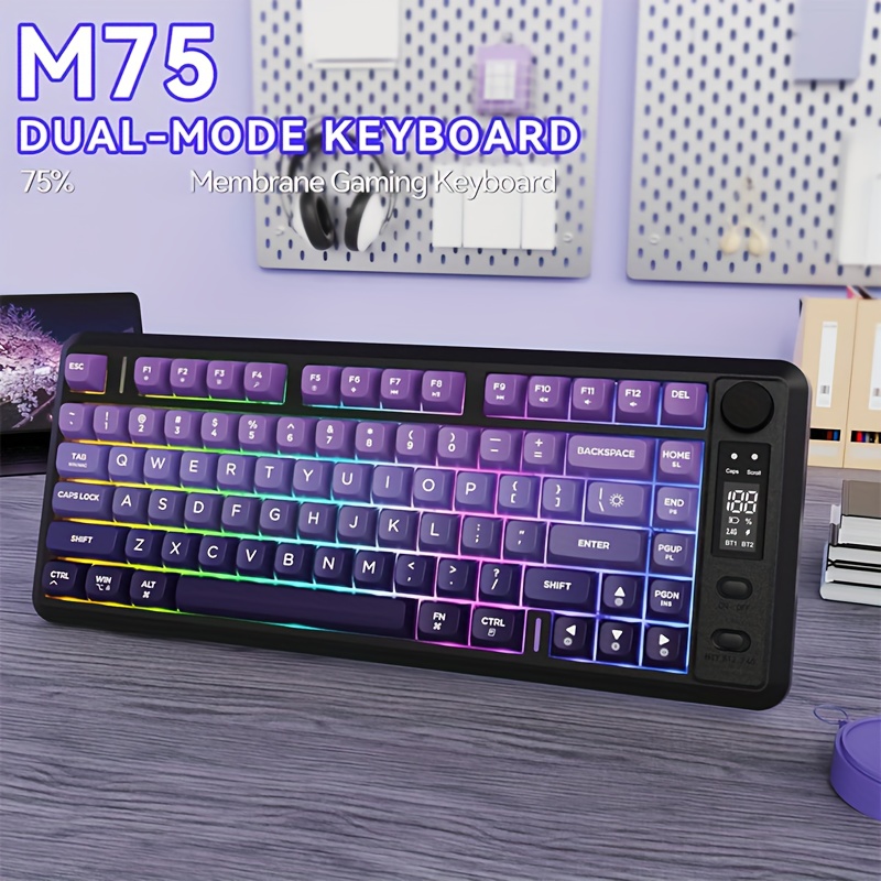 M75 Gaming Keyboard, RGB Backlit Small Membrane Keyboard with Smart Display & Knob, PBT Gradient Keycaps for PC, MAC