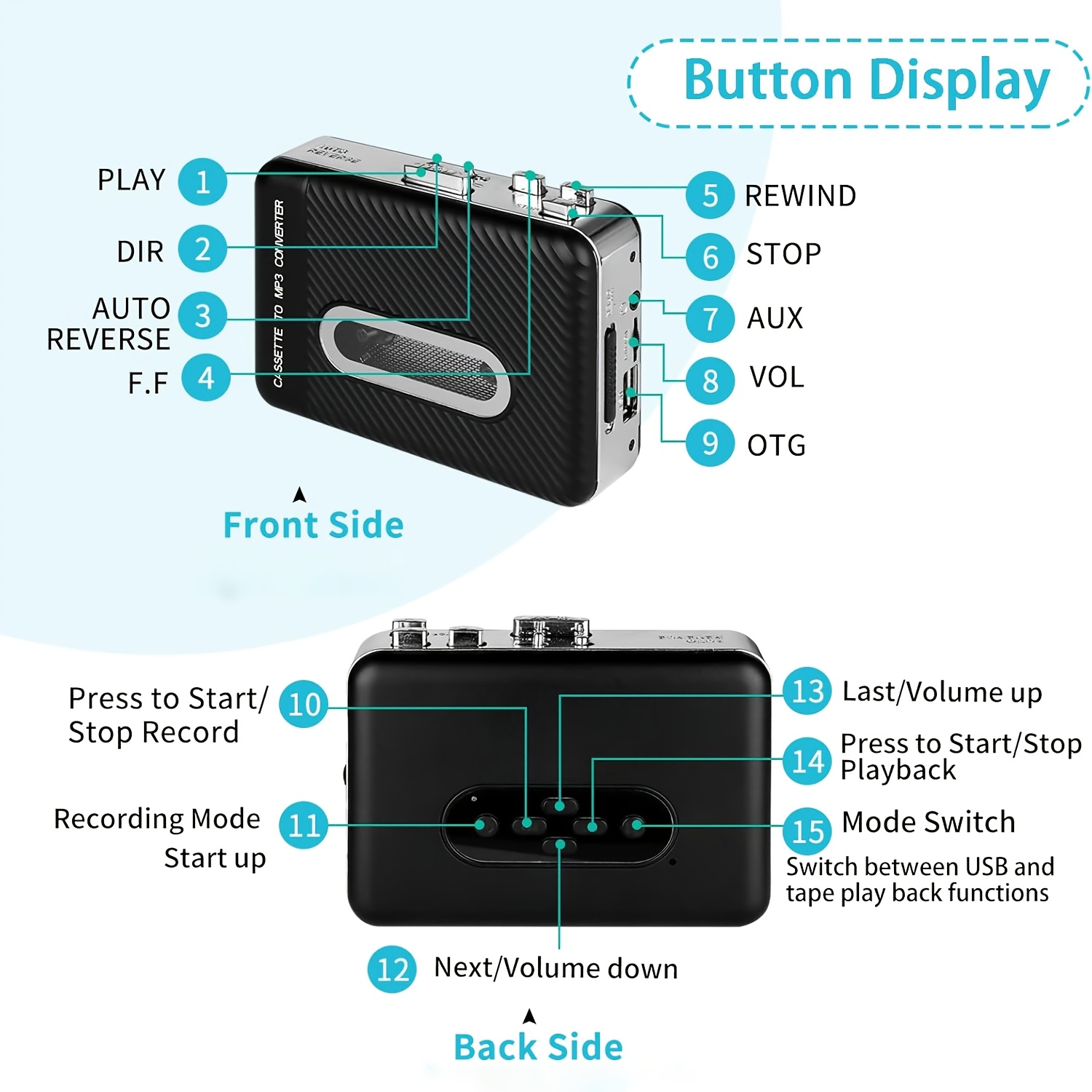 Mini USB Cassette Tape Player Portable Cassette Tape Recorder with Auto Reverse And Stereo Sound USB Audio Cassette to Digital Mp3 Converter Portable music player Cassette Tape Player