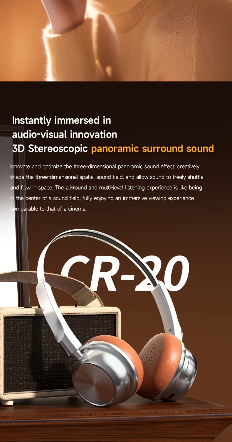 Vintage Design Headset CR-20, Lightweight and Retractable Design, Fashionable Earphones, First Choice for Gifts, Compatible with Mobile Phones, First Choice for Gaming and Watching Movies