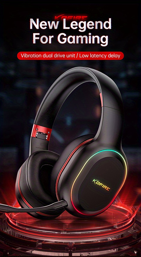 [Wireless Gaming Headset] UG-05 2.4GHz Wireless Gaming Headset | Ultra-Low Latency Technology + Immersive Vibration Feedback | 30H Battery Life Over-Ear Design | Detachable Microphone + High-Speed Wireless Adapter | Dynamic RGB Lighting | Compatible with PS4/PS5/PC